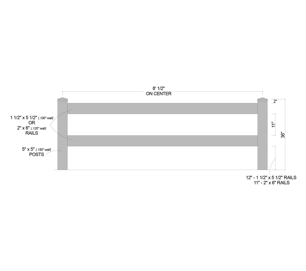 Rails: 1 1/2″ x 5 1/2″ x 16′ (.090″ Wall) or 2″ x 6″ x 16″ (.090″ Wall)