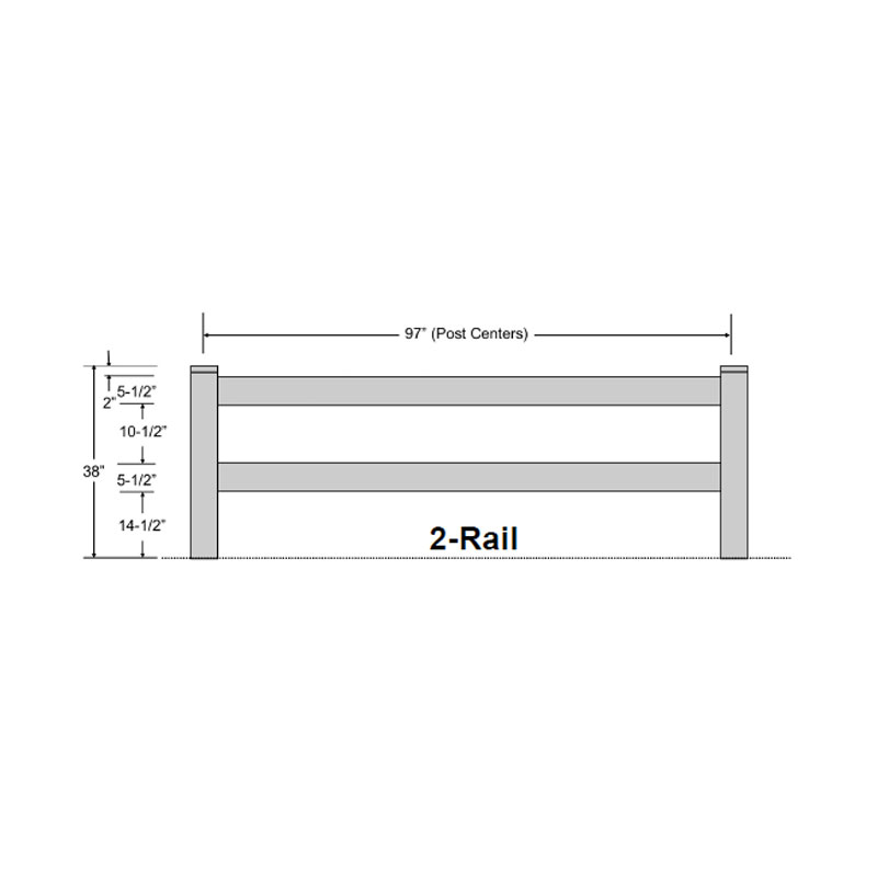 | 2-Rail: | Height: 3′ 2″ Width: 8′ |