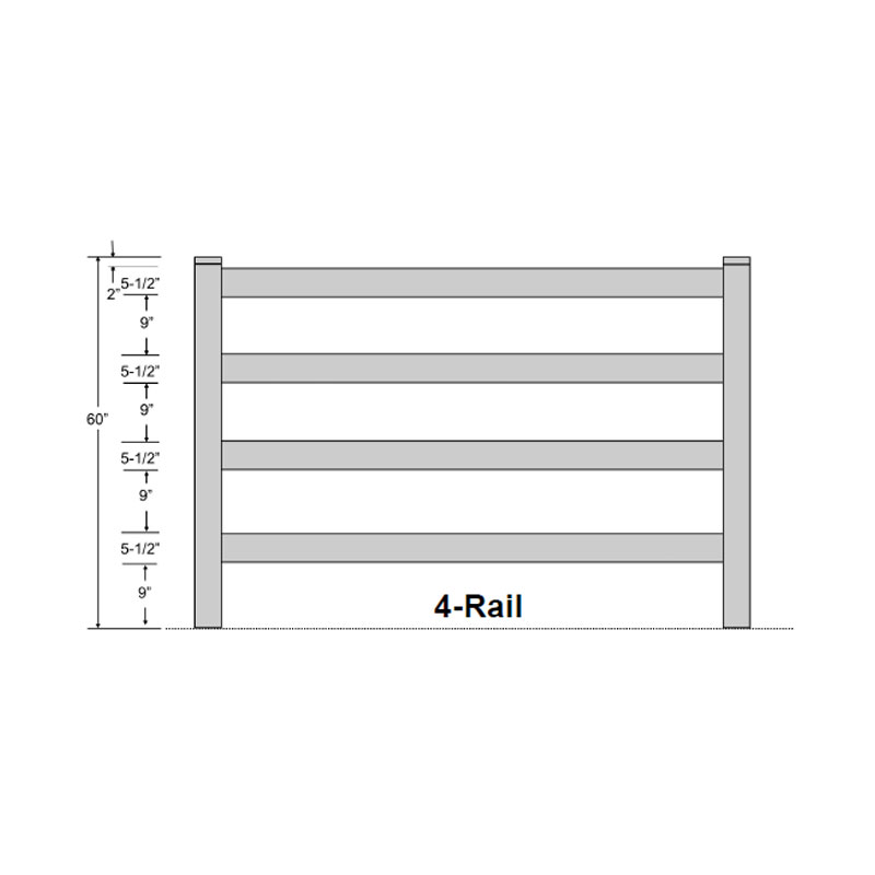 | 4-Rail: | Height: 5′ Width: 8′ |