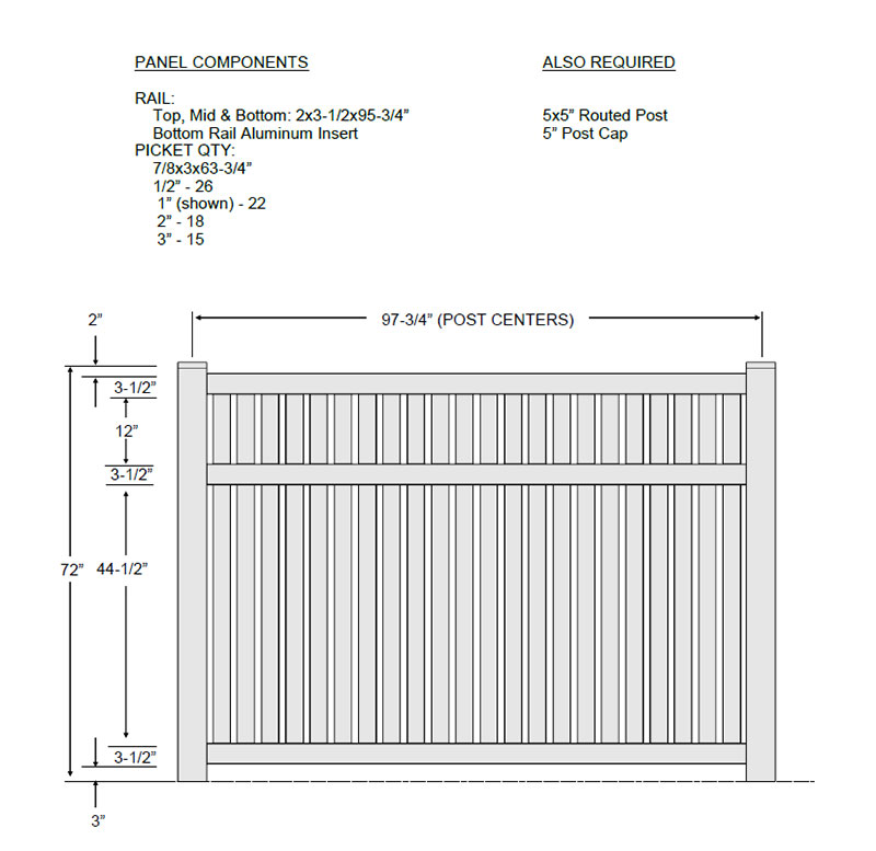 | Picket Spacing: | 1/2″ |